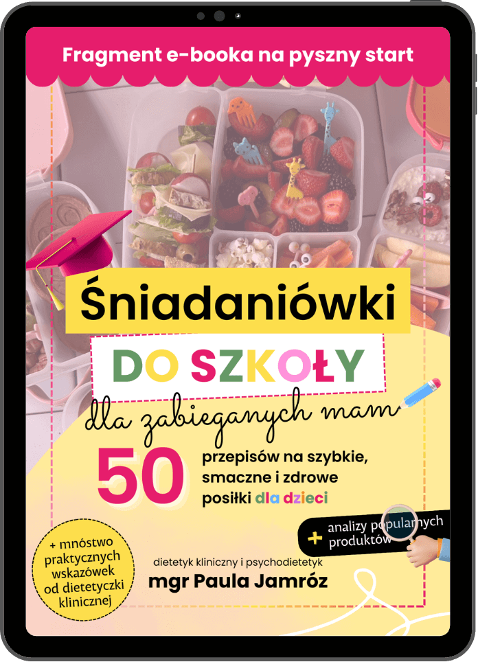 E-book z 50 szybkimi i zdrowymi przepisami na śniadaniówki do szkoły, specjalnie dla zabieganych mam! Proste rozwiązania na spokojniejsze poranki i puste pudełka wracające ze szkoły.
