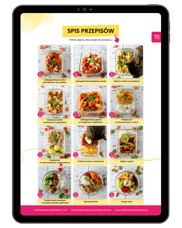 👉 To ponad 420 gotowych pomysłów, które ogarniają Twoje jedzenie na cały tydzień – bez stresu, bez nudy i bez stania w kuchni godzinami 💛