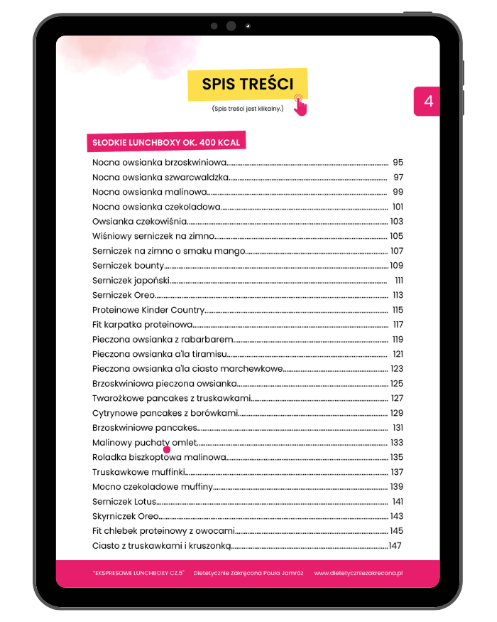 - Nawet jeśli zapomnisz lunchboxa, masz listę posiłków na szybko – bez problemu znajdziesz coś zdrowego w sklepie.