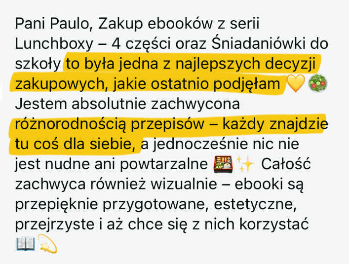 👉 W środku znajdziesz 50 przepisów – słodkich i wytrawnych, wszystkie szybkie, sprawdzone i dopasowane do pudełek szkolnych. Do tego mnóstwo wskazówek, analiz produktów i praktycznych trików.